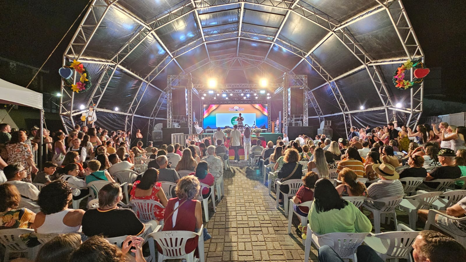 A cerimônia do Concurso Rainha e Princesas foi um dos momentos mais aguardados da primeira noite da 34ª Sommerfest. O evento começou com a chegada das representantes da edição de 2024, que se posicionaram em seus tronos para receber as novas candidatas.