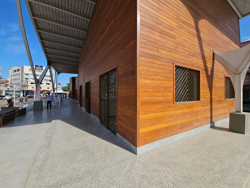 As intervenções contam com 663 metros quadrados de área coberta e 712 metros quadrados de edificações. Foram implantados dois guichês para venda de passagens, oito lojas, banheiros, postes de iluminação, pavimentação em blocos de concreto, meio fio e calçada cidadã. Ao todo, foram utilizados 25.612 quilos de estrutura metálica de perfis laminados.