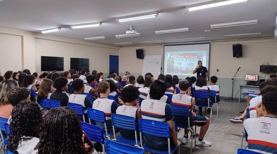 Outra iniciativa importante foi o trabalho de “educação para o consumo” realizado na Umef João Calmon, em Gaivotas, onde 700 alunos do 8º e 9º anos participaram de atividades sobre consumo consciente e equilibrado.