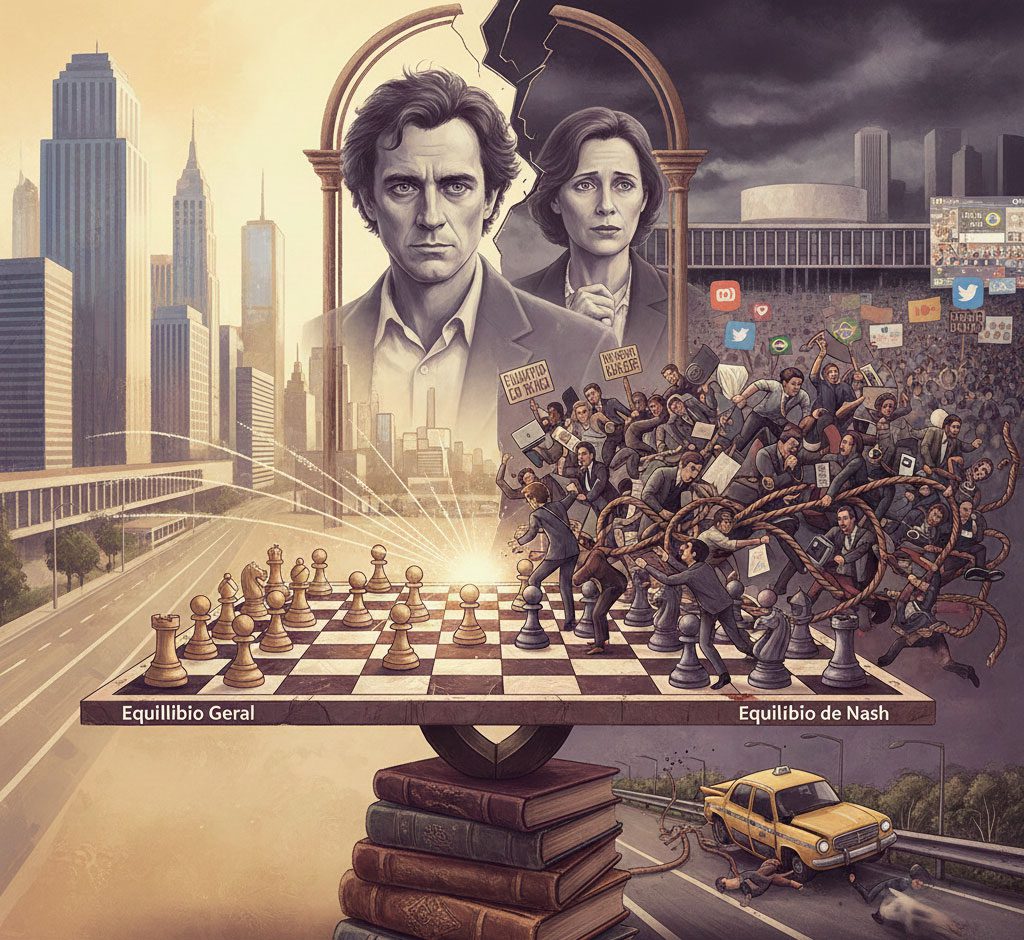 John Nash contestou o pilar principal da teoria econômica ao mostrar que os agentes que atuam e decidem produzir, comprar e vender nos mercados se comportam como jogadores e que o ponto de equilíbrio ótimo, que harmoniza os interesses individuais e o interesse coletivo é uma miragem inalcançável.